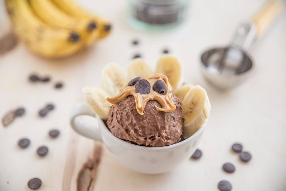 - يوضع الحليب في الخلاط، ويضاف إليه الكريمة والكاكاو والموز وزبدة الفول السوداني، ويضرب جيدا.