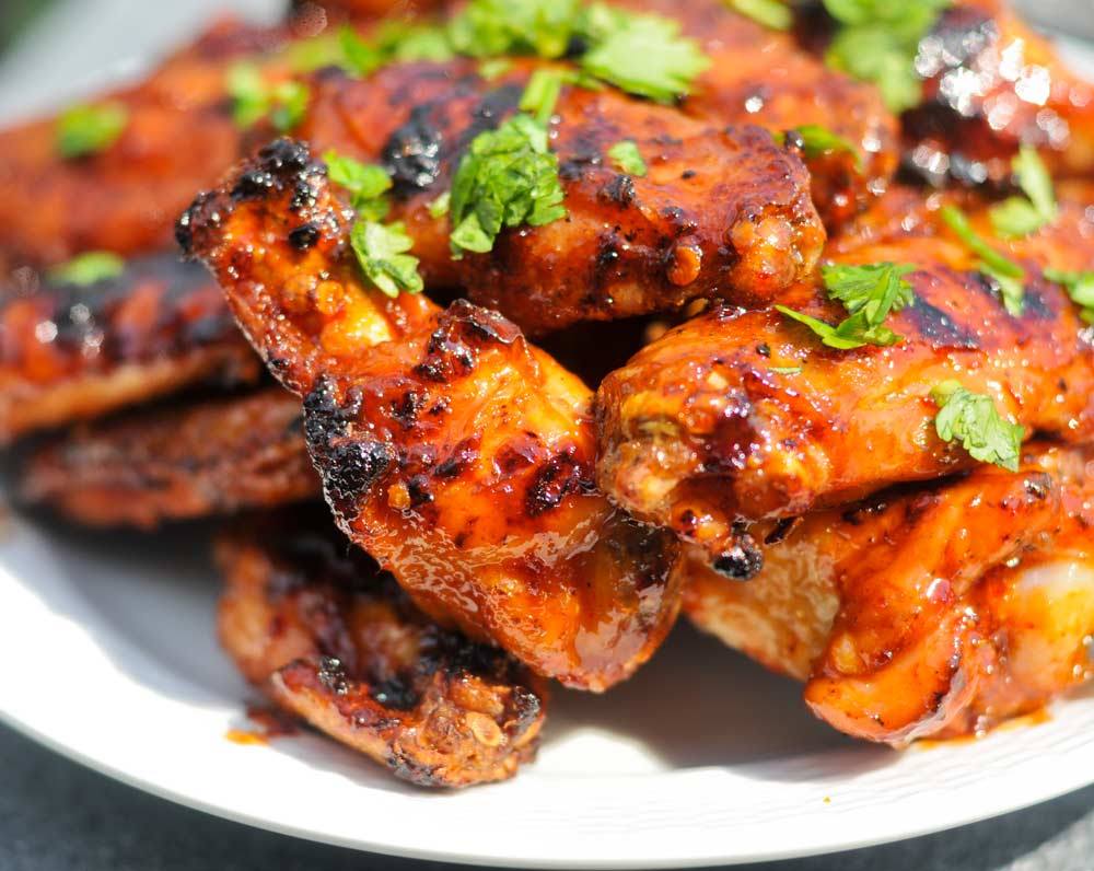 - تنظف الجوانح ويتخلص من الجزء الغير مرغوب فيه ثم يقسم الجنح إلى قسمين ويتبل بصلصة الباربكيو والملح لمدة ساعتين.