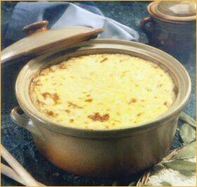 3. يضاف إلى الأرز بالقشطة واللبن والفانيليا ويوضع في قالب مدهون بالزبد