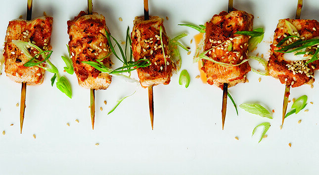 أسياخ الدجاج مع صلصة الباربيكيو الآسيوية