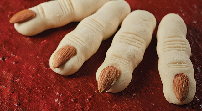 يشكل الخليط على شكل أصابع وتضغط حبة من اللوز في كل إصبع لعمل الظفر.