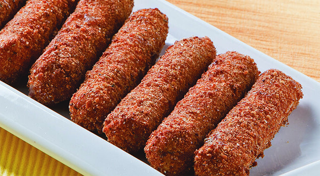 تغمس أعواد الجبن في الدقيق ثم في البيض.