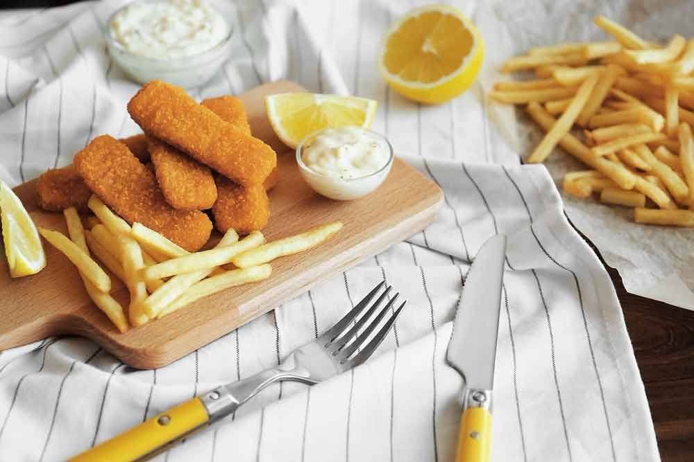 - تقلى أصابع السمك في الزيت، وتقلب على الجانبين حتى تكتسب اللون الذهبي.