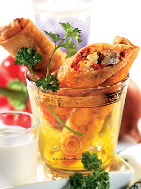 - تشكل أصابع بأوراق البسطيلة والحشوة ثم تلصق أطرافها بالبيض المخفوق.