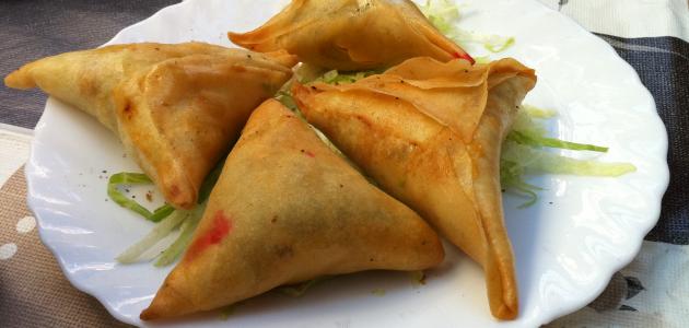 - نُغلق العجينة على الحشوة بحيث نحصل على شكل مثلّث.