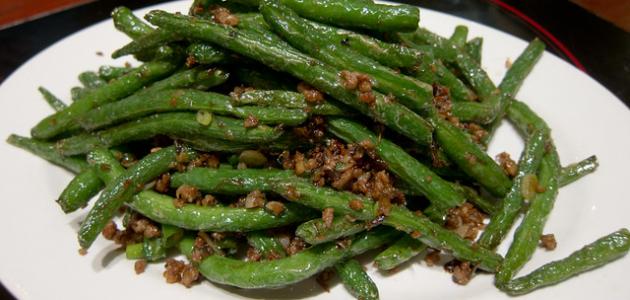 - تقطيع اللوبيا الخضراء إلى قطع طويلة.