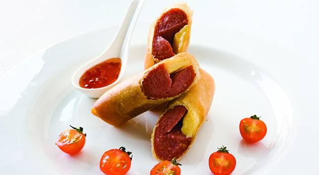 يوضع كل عود من الهوت دوج مع عود من جبن الشيدر، ويُغلفا بلفافة من لفائف شانجهاي، ويُطوى كلا الطرفين.