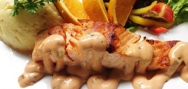 • وضع الدجاج في طبق التقديم، وتوزيع صلصة الزعفران عليه ونثر القليل من البقدونس وتقديمه.
