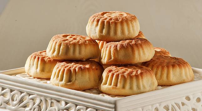 تصف على صينية و تخبز في الفرن درجة الحرارة 180 حتى نحصل على لون أشقر تترك في الصينية حتى تبرد وتكون جاهزه