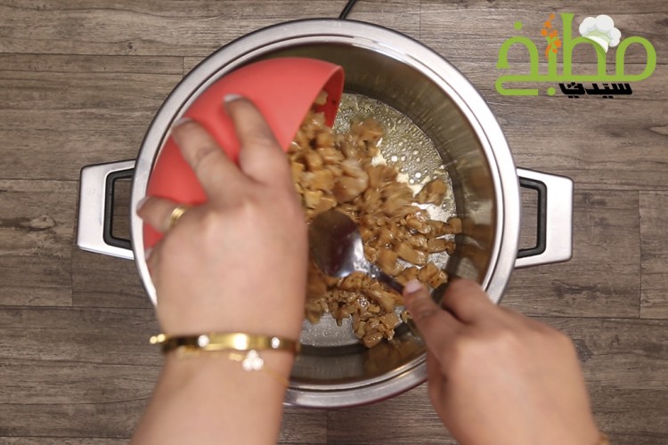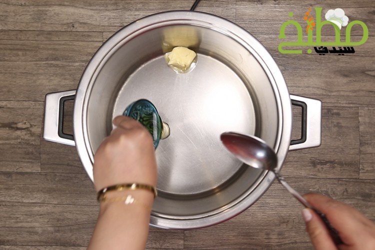 ذوبي الزبدة مع الزيت النباتي في قدر على النار