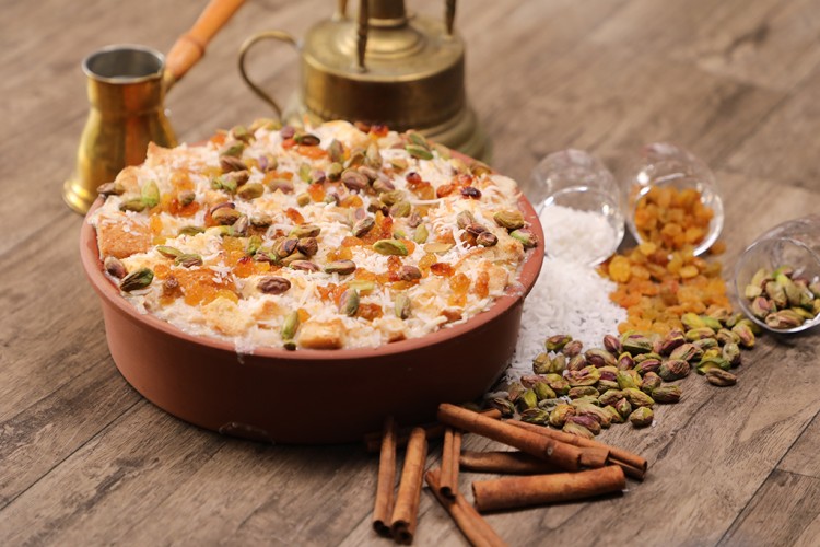 - زيني بجوز الهند، والزبيب، والفستق الحلبي.