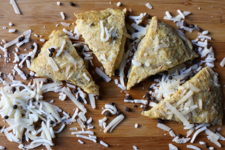 2. ثم تدهن مقلاة بملعقة زيت ويضاف إليها خليط البيض ويترك قليلاً حتى يحمر أطرافه ثم نضيف إليها الجبنة ثم يقدم الأومليت ساخناً.
