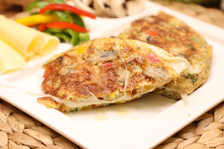 4. اقلبي الأومليت على شرائح الجبن، وانقلي الأومليت لطبق التقديم، وقدميه ساخناً مع قطع الخبز المحمص بحسب الرغبة.