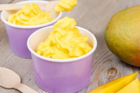 - يوضع الخليط فى وعاء من البلاستيك ويغطى جيدا ويدخل الفريزر حتى يتجمد ثم يقدم.