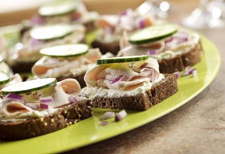 - ضعي شرائح الرومي المدخن على شرائح التوست.
