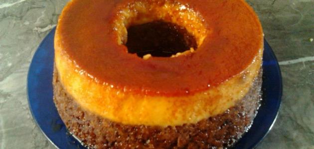 - سكب خليط الكيك في القالب، ومن ثم مزيج الكريم كراميل.