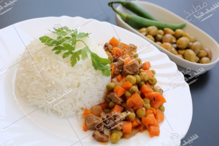 يقدم هذا النوع من الأطباق الرئيسية مع الأرز الأبيض المفلفل