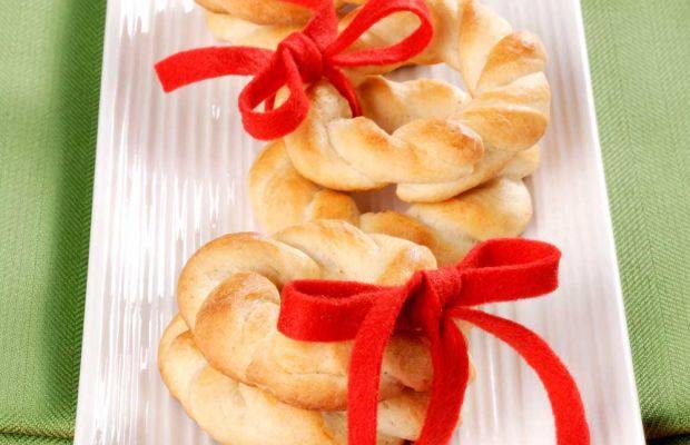 ٣. تُقرص العجينة على شكل شرائط دائرية وتُلف على شكل دوائر بلصق أطراف العجينة ببعضها.