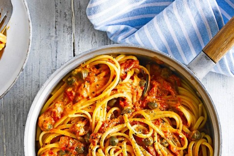 1. فى كمية ماء وفيرة مغلية مع معلقة من الملح نسلق المكرونة ثم تصفى.