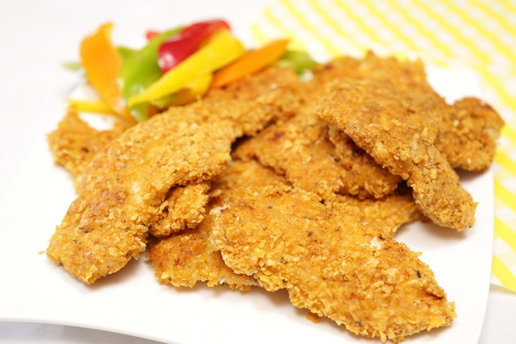 3. مرري صدور الدجاج باللبن الزبادي، ثم برقائق الذرة.