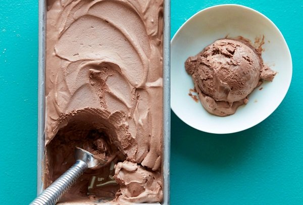 - نضع حوالي 1 كوب من الكريمة المخفوقة في مزيج الكاكاو ونحرك بواسطة ملعقة مطاطية حتى تختلط المكونات تماماً، ثم نضيف هذه المزيج إلى الكريمة المتبقية ونحرّك . نضع المزيج في وعاء معدني مبرّد ونغطيه ونضعه في الثلاجة لمدة ساعتين حتى يصبح قوامه كالآيس كريم . بعد ذلك نضيف نكهات حسب الرغبة ونحرك بالملعقة ثم نعيد الوعاء إلى الثلاجة لمدة 3 ساعات إضافية حتى يصبح قوام الآيس كريم أكثر صلابة . وبذلك يصبح لدينا أشهى آيس كريم في المنزل .