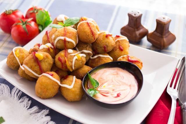 نضيف الصوص الأبيض على الكفتة المقلية ويجمل بالبقدونس ويقدم