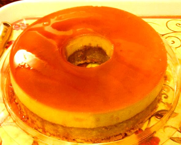 - نضع الكراميل في قالب الكيك ونتركه جانباً .