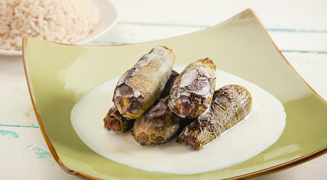 للتقديم، توضع الكوسا بطبق التقديم ويوضع اللبن الرائب على الوجه أو توضع الكوسا في اللبن الرائب وتطبخ لـ10 دقائق فقط.