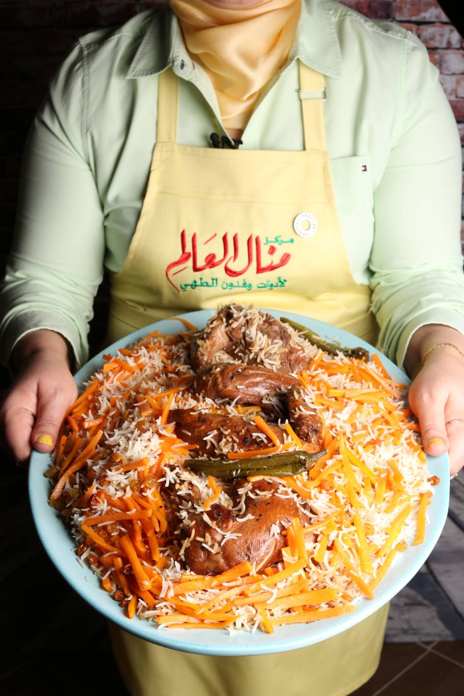 أعملي تجويف خفيف في سطح الأرز، ضعي الجزر والزبيب على سطح الأرز مع نثر بعض الأرز على الجزر والزبيب لتغطيته قليلا ليكتسب نكهة طيبة.