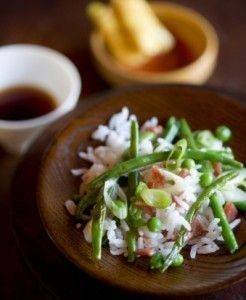 - وعند التقديم يخلط الخليط السابق مع الأرز ويقدم ساخناً يمكنك أن تضيفي الدجاج المقطع قطعاً صغيرة أو الروبيان