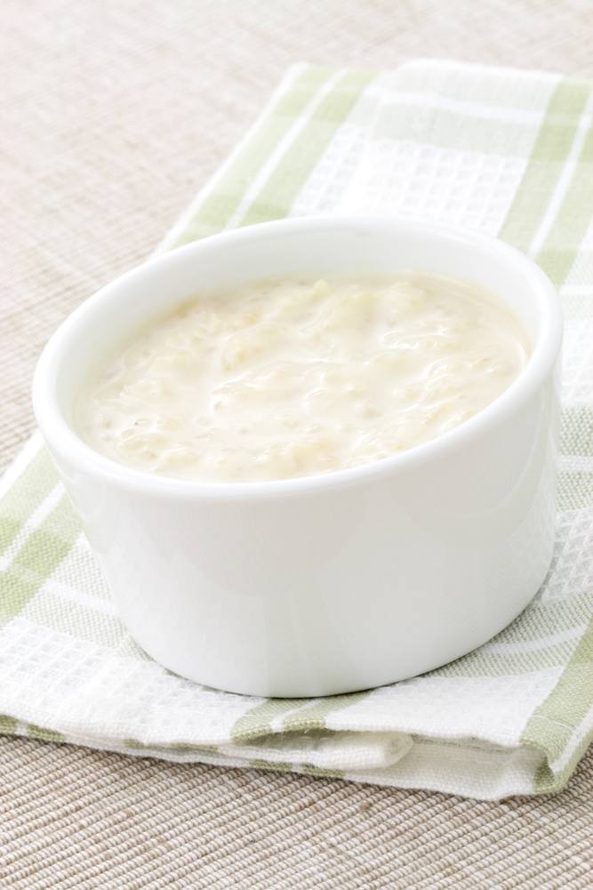 - ضعي الحليب على النار في إناء ثم اتركيه ليغلي ثم ضيفي الأرز المسلوق وقلبي.
