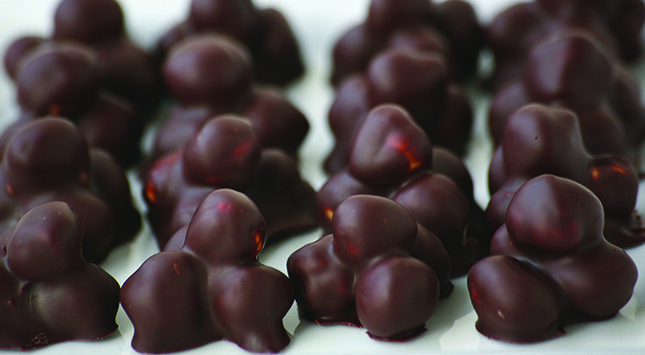 يمزج البندق مع الشوكولاتة ثم توضع كل 3 حبات بندق جنبا إلى جنب ثم توضع واحدة أخرى فوقهم على ورق الخبز حتى تتماسك الشوكولاتة.