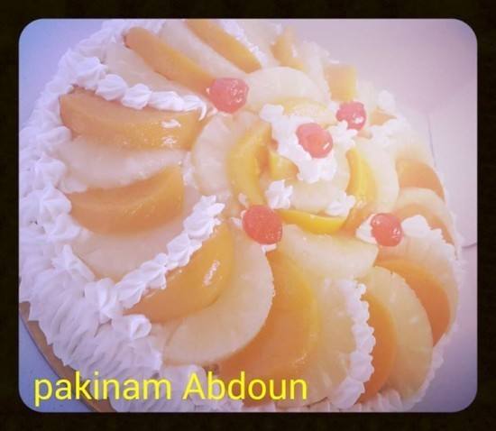 - ونضع عليه جزء من الحشو وای فاكهة ونكرر العملية حتى تنتهى الطبقات ونزينها بالكريمة باستخدام كيس حلوانى او حسب الرغبة وندخلها الثلاجة ترتاح علی الاقل 4 ساعات قبل التقديم .