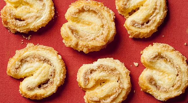 يُغلف البف بستري ويوضع في المجمد حتى يتماسك، ثم يُقطع العجين إلى شرائح رفيعة.