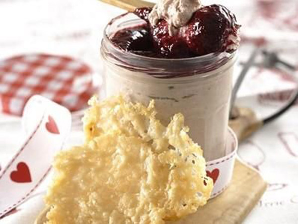 5. ينقل مزيج صلصة التوت فوق «الباتيه»، ويقدّم مع رقائق «البارميزان».