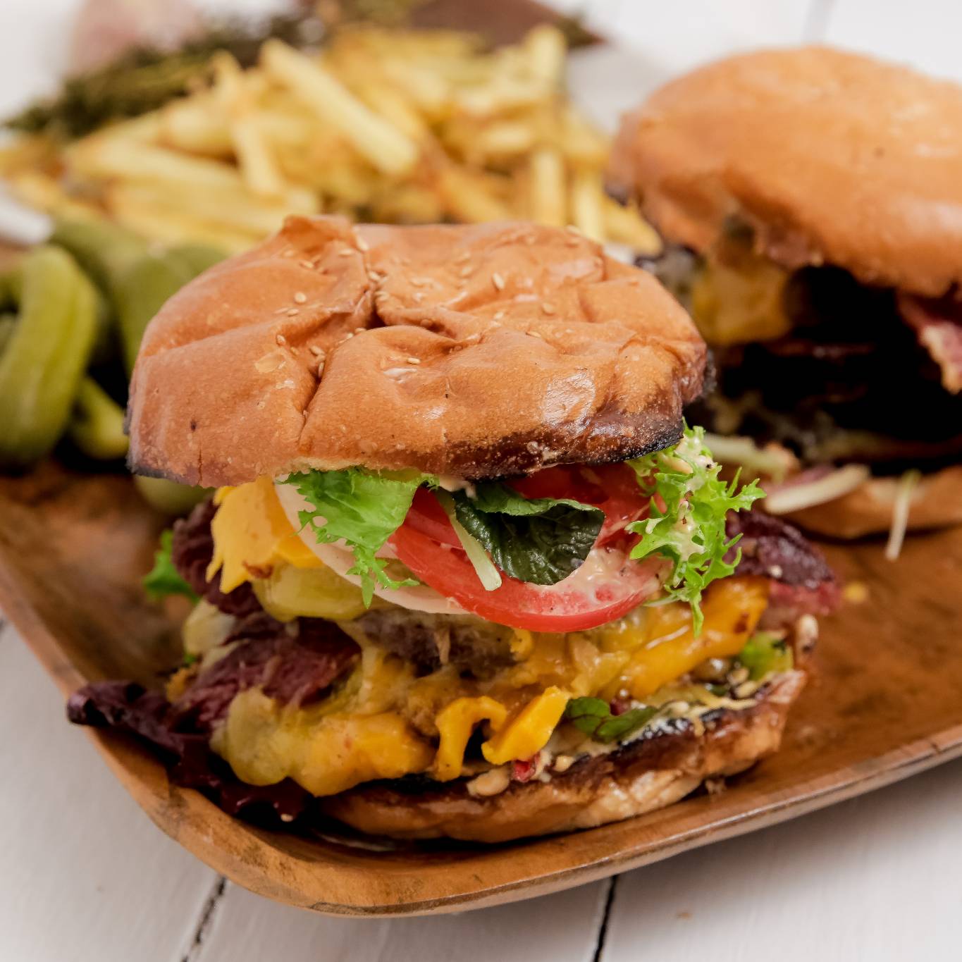 نضع الخس ثم البرجرثم البيكون و الطماطم و البصل