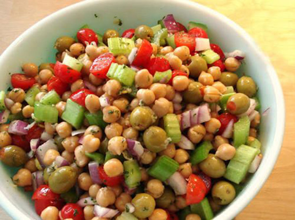 3. يُمزج زيت الزيتون مع عصير الليمون. ويضاف الملح، الفلفل الأسود، البقدونس والنعناع. ويسكب فوق السلطة.