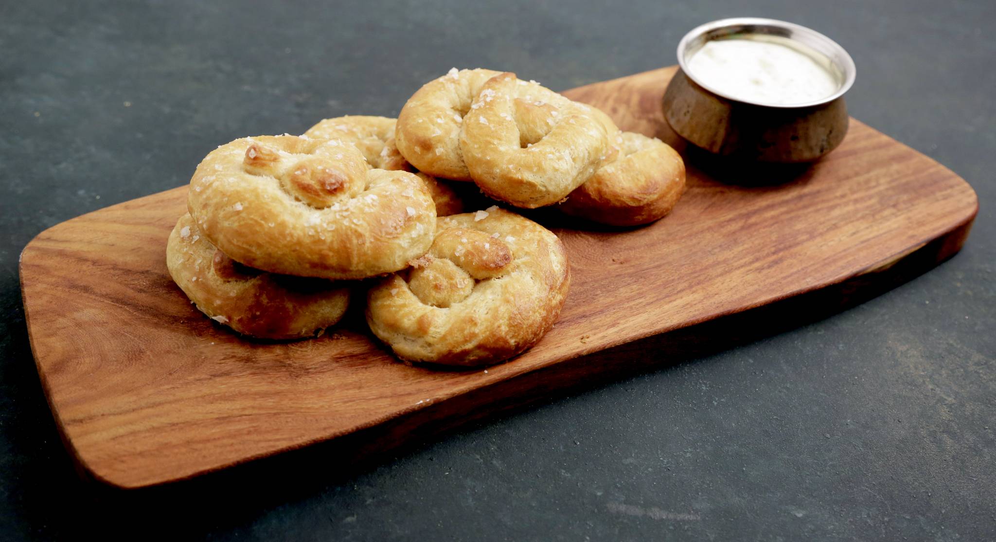 بعد التخمر نقطع العجينة لكرات ونفردها على شكل حبال سمكها 2 سم ثم نشكلها على شكل البريتزل الشهير (كما فى الصورة)