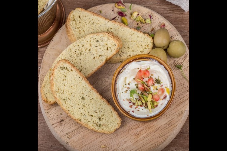 2. توضع العجينة في صينيَّة مُبطَّنة بورق خاص بالخبز، وتُجمع باليدين على هيئة مستطيل. ثمَّ، تُخبز في فرن ساخن مسبقًا، على حرارة 170 درجة مئويَّة، وذلك لنصف ساعة. فتُترك تبرد تمامًا.