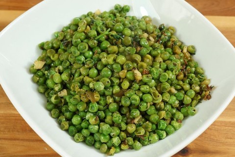 - ثم بواسطة شوكة نعمل على هرس البسلة هرس خشن ثم تغرف فى طبق التقديم تقدم فورا بالهنا والشفا.