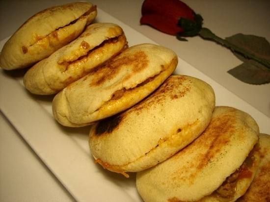 6. نحضر قطع الخبز نفتح الأقراص مع الجانب تحشى مقدار ملعقتين من الحشوة وندخلها الفرن إلى أن تحمر