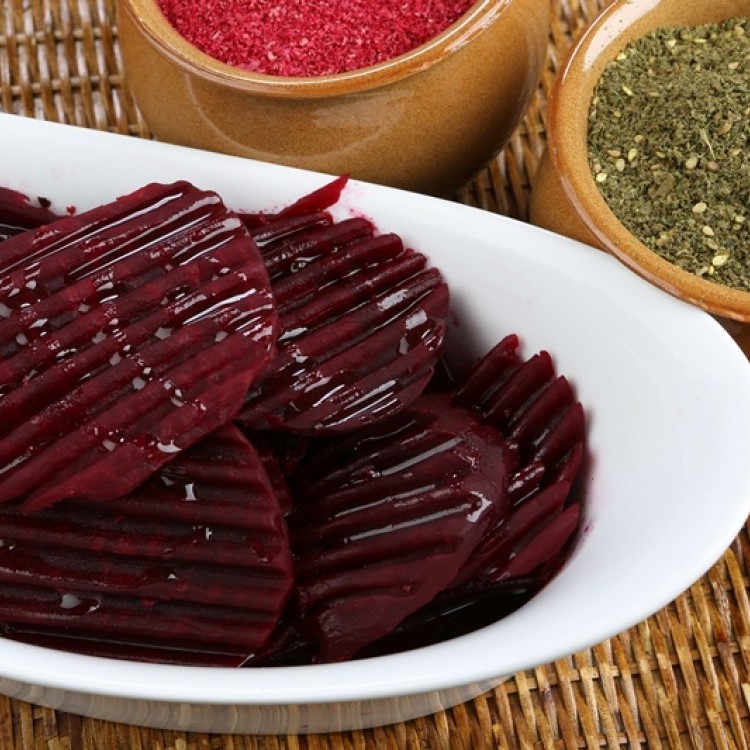 2 يقشّر البنجر، ثم يقطّع حسب الرغبة.