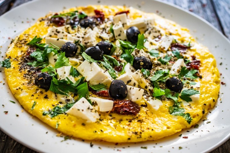 - سخني الزبدة في مقلاة غير لاصقة على النار وأضيفي الزيتون والبيض المخفوق وغطي المقلاة حتى ينضج البيض ثم ارفعي الغطاء واقلبي البيض على الجهة الأخرى.