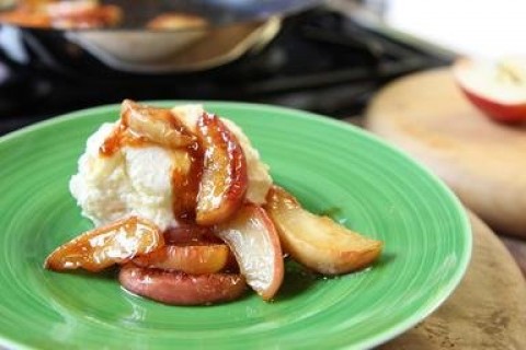 - ثم نضيف التفاح ونقلبة حتى يتم تغطيتة بالزبد والسكر.