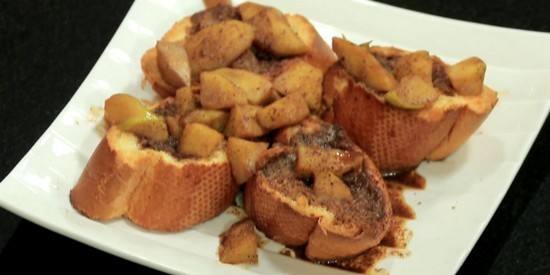 4.     يوضع توبينج التفاح على التوست، ترص على طبق تقديم وتقدم.