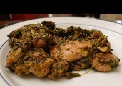 - ثم، يسكب السبانخ، ويدع حتى ينضج يقدّم هذا الطبق مع الأرز البسمتي ويزيّن بالكزبرة .