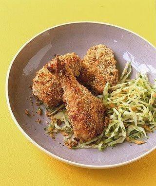 - يوضع قطع الدجاج في خليط اللبن ونقوم بتغميسها جيدا في اللبن