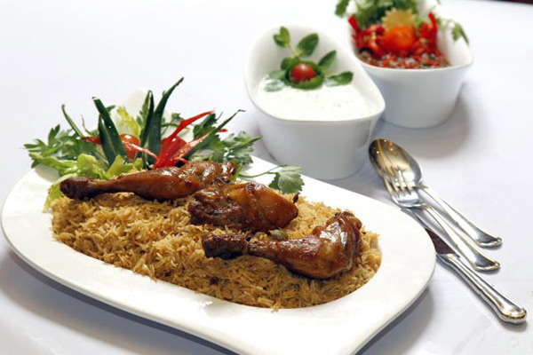 4. يوضع الدجاج على نار متوسطة، إلى أن يبدأ بالغليان ثم تخفف النار. تغطّى القدر، وتخفّف النار، إلى أن ينضج. ويجب أن تبقى نحو 3 أكواب من المرق مع الدجاج، وحين تغلي، تغطّى القدر وتترك على نار هادئة، إلى أن ينضج الأرز.