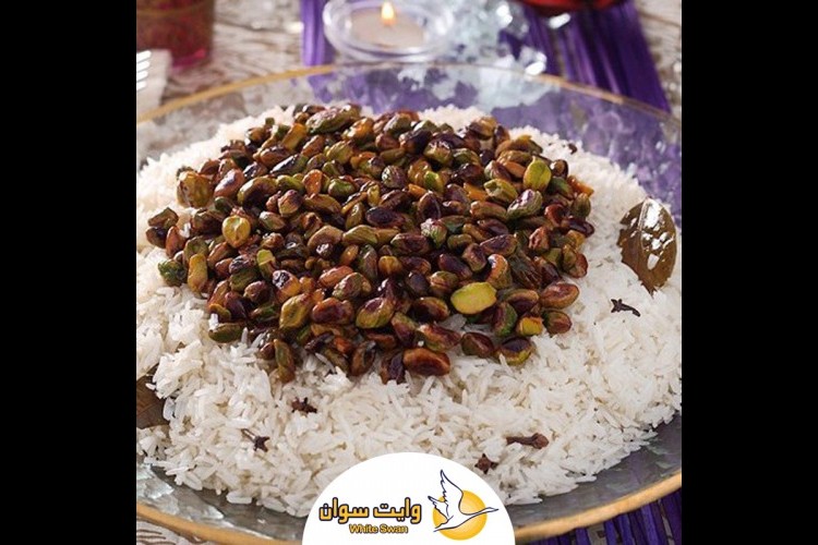5- تحمّر الكمية المتبقية من الفستق في الزيت أو السمن، ويضاف إليها العسل مع التحريك، حتى يغطي حبات الفستق. ثم يرفع عن النار ويوزّع على سطح الأرز.