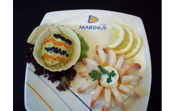 2- يمدّ الجبن بواسطة السكين على “التوست”، ثم تضاف حبات الروبيان، ويزيّن بالبقدونس والليمون.